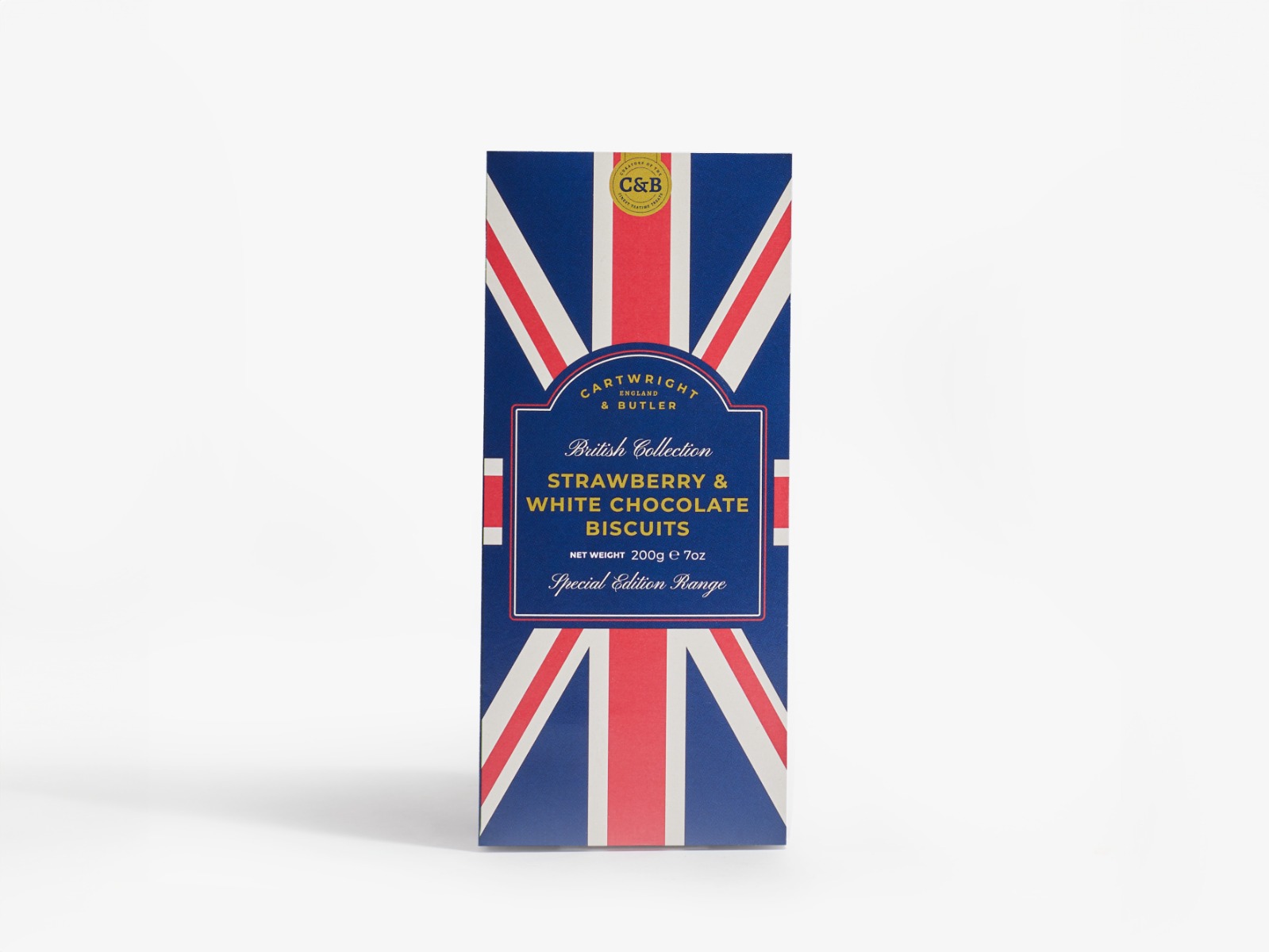 Inspired by the classic combination of strawberries & cream. These buttery, crumbly biscuits include delicate white chocolate and tangy dried strawberry pieces. Presented in our new British carton, showing the Union Jack.