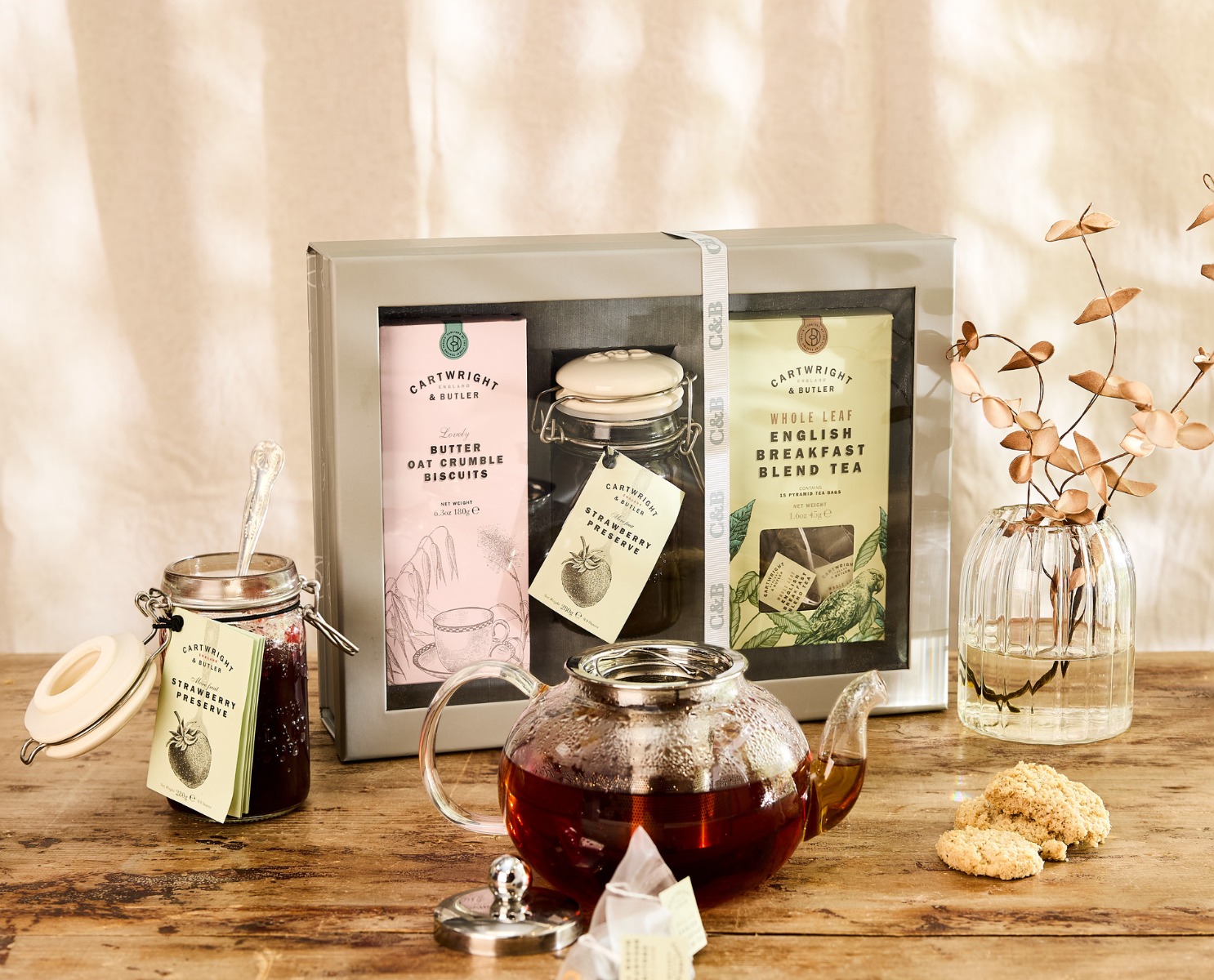 Of course, it contains nothing but wonderful products; The crumbliest of Butter Oat Crumbles, A strawberry preserve that seems to have captured the essence of a British Summer’s day and A packet of our finest English Breakfast tea. Brought together, they form the very building blocks of a memorable teatime treat.