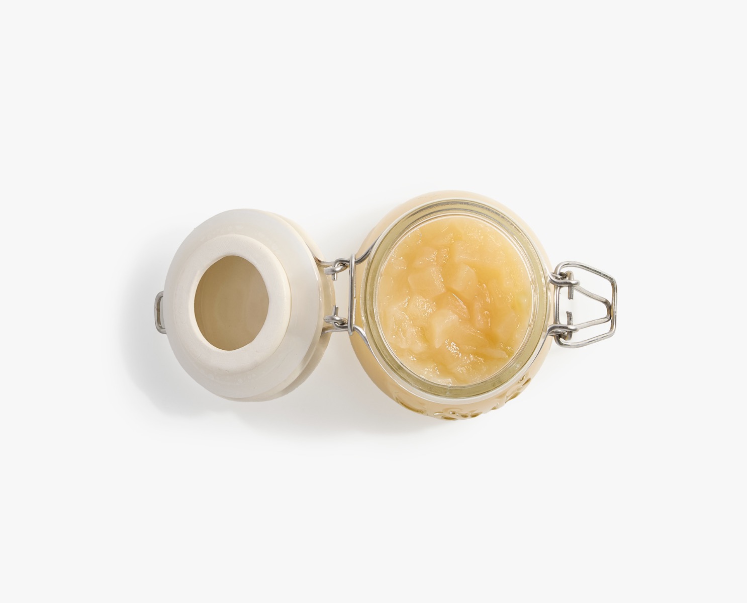 Any apple sauce recipe starts with the apples. That’s why we insist on using Bramley Apples. Only ever grown in England, these apples are unique in retaining their intense flavour during cooking. Perfect with roast pork, and works perfectly as a sweetener in bakes such as muffins, added to plain yoghurt, or as a topping for muesli. Packed in our signature clip-lid jar with a ceramic lid, it looks good on any table.