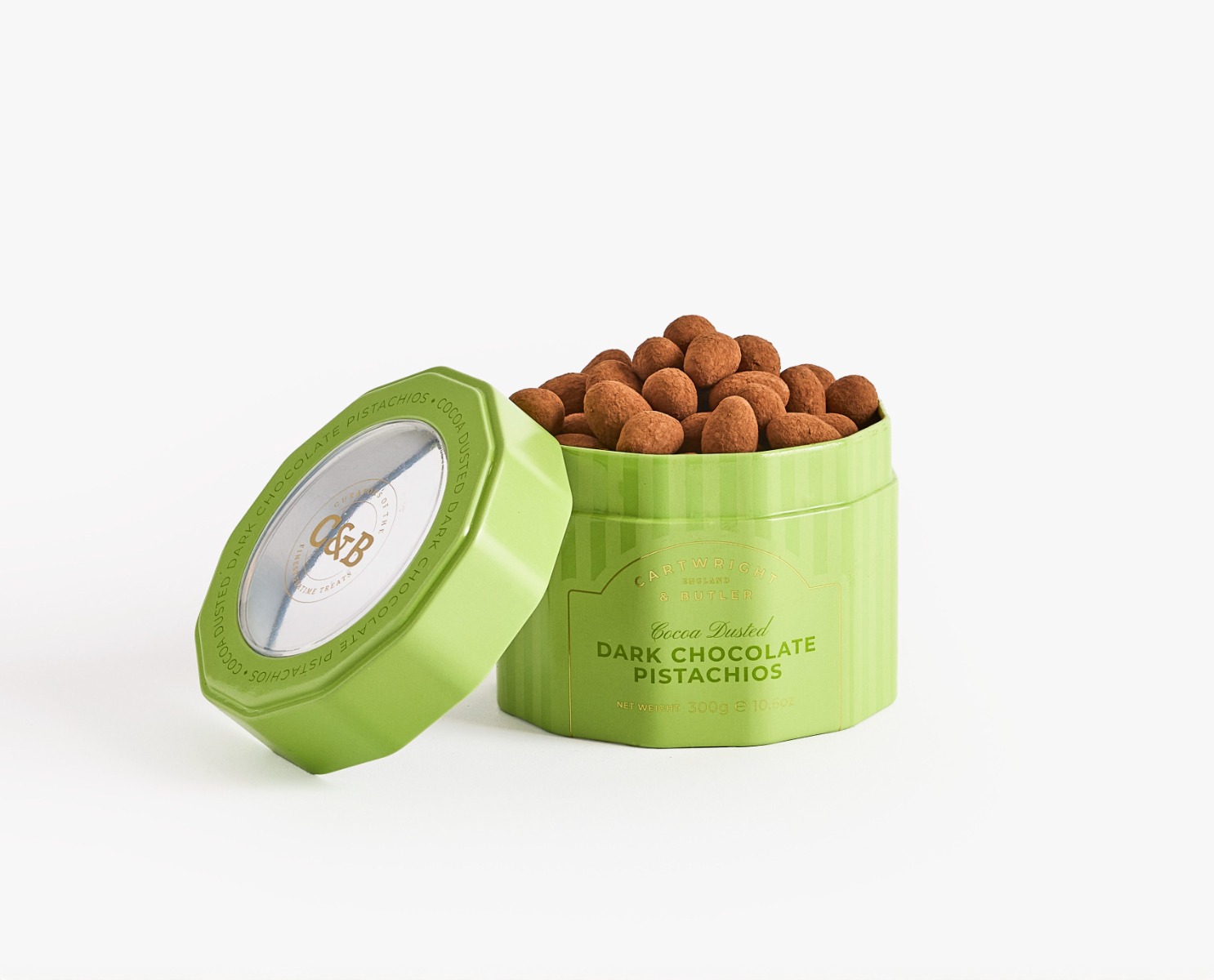 Mild, nutty, yet sweet flavour, complemented by a rich, buttery texture. Our pistachios are smothered in a sumptuous, soft dark chocolate, that gives them a bitter-sweet contrast. These luxurious delicacies are perfect for gifting, sharing, or enjoying all to yourself.