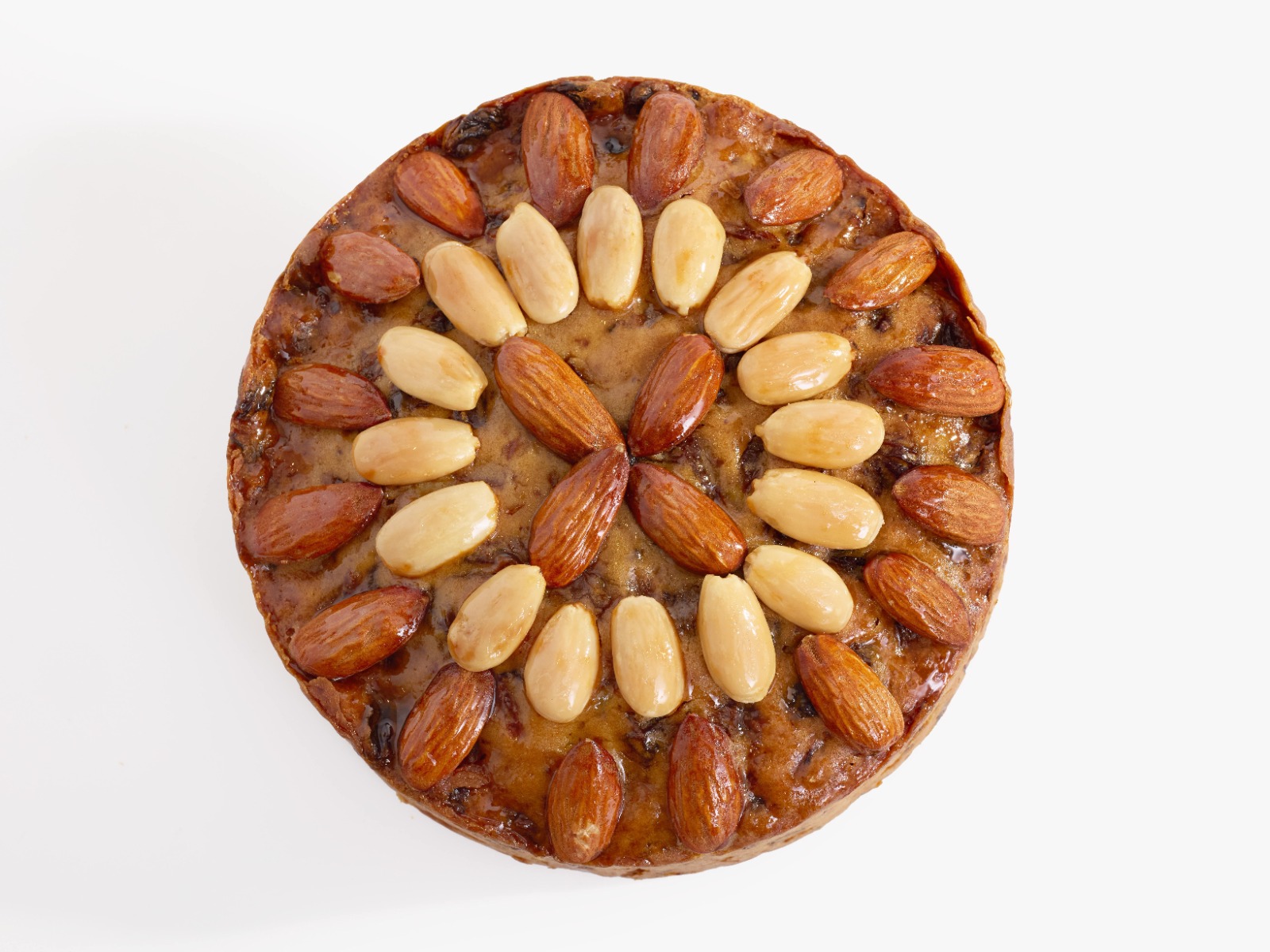 A delicious, moist cake filled with sultanas, currents, raisins and double cut citrus peel, decorated with almonds.