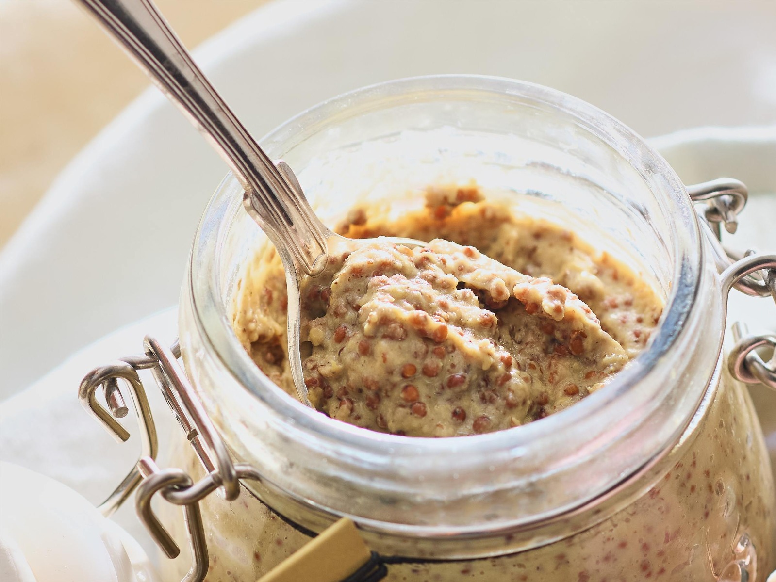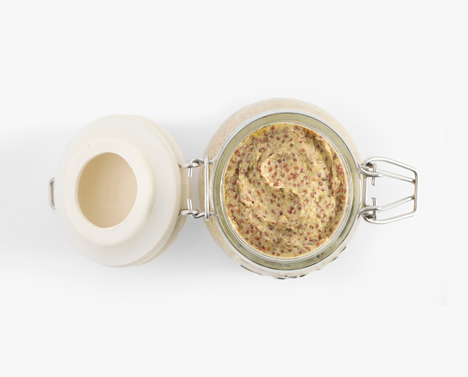 First appearing on the British table in the Middle Ages, as a rough paste of crushed seeds, mustard has always enjoyed an enviable place at the dining table. Our wholegrain recipe is an altogether more refined use of those seeds and blended with mustard powder and vinegar to create a condiment capable of lifting everything from your roast, to a plate of bangers and mash, to a cheese sandwich. Packed in our signature clip-lid jar with ceramic lid, it looks good on any table.