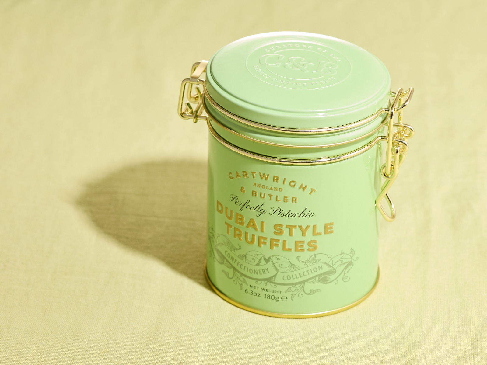 Melt-in-the-mouth milk chocolate filled with a creamy pistachio ganache, knafeh crunch, and finished with a vibrant yellow and green drizzle. These irresistible Dubai Style Truffles are a new favourite at Cartwright & Butler HQ.